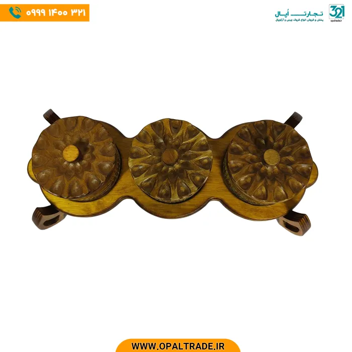 ✨ اردو خوری سهخانه شیشهای با پایه چوبی – زیبایی سنتی در میز غذای شما!