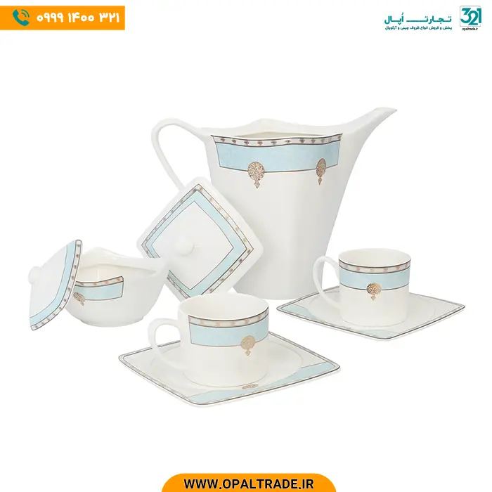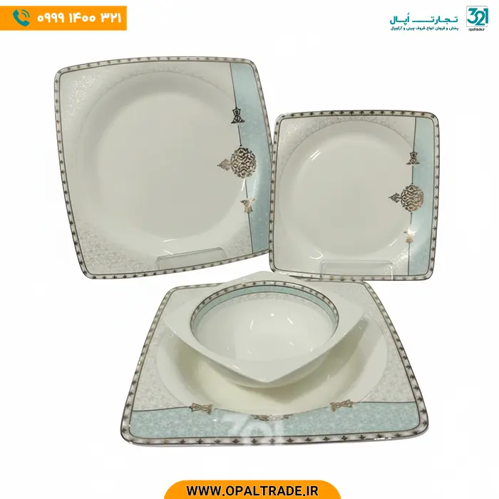 سرویس چینی استخانی 18 نفره 129 پارچه مقصود فیروزه طلایی