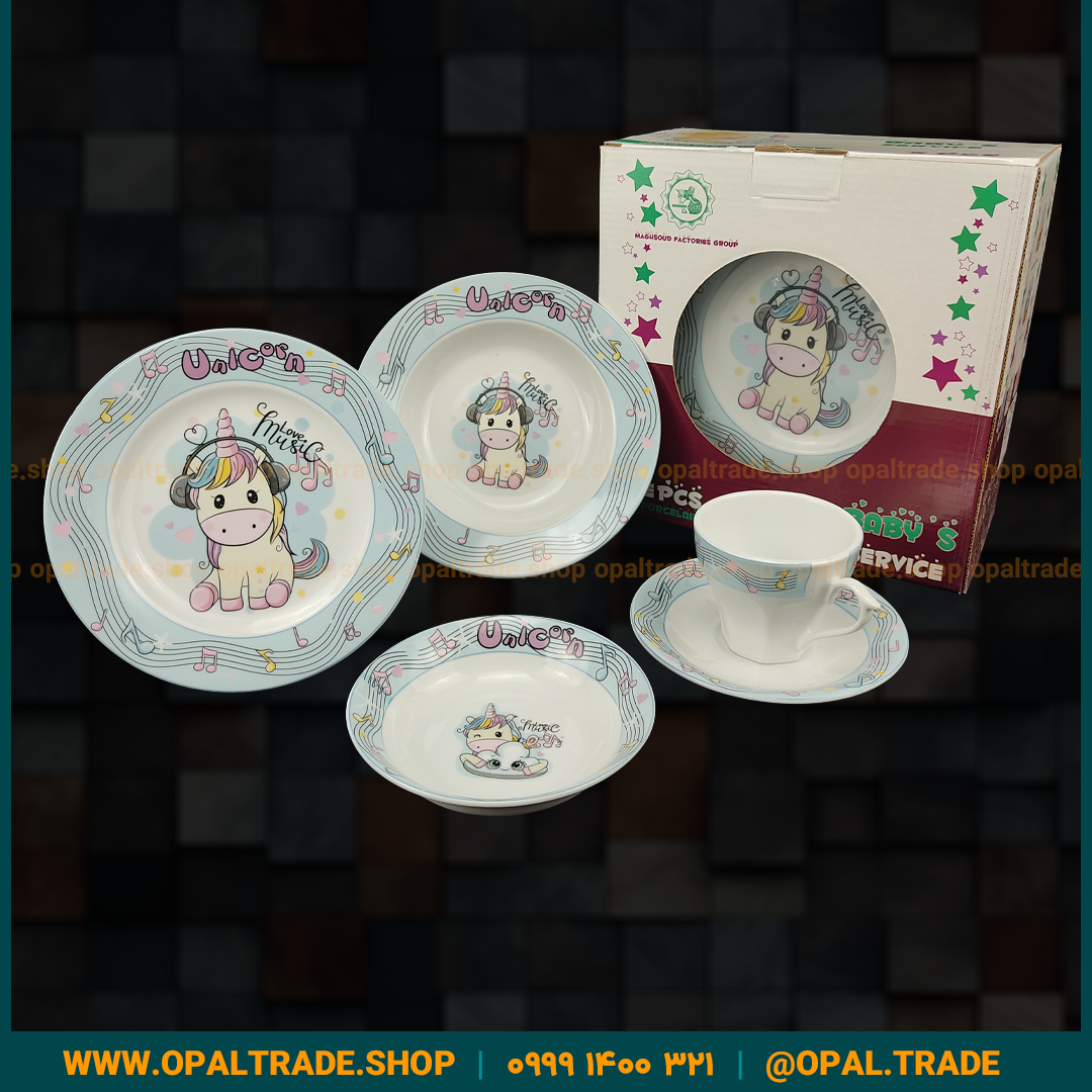 سرویس کودک 5 پارچه اسب تک شاخ فیروزه ای آفر کد 50172