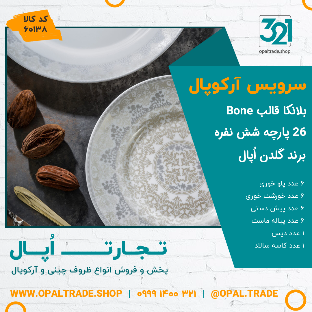 سرویس 26 پارچه بلانکا قالب Bone کد 60138