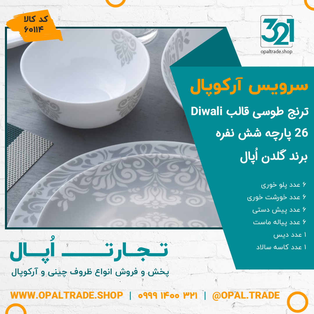 سرویس 26 پارچه ترنج طوسی قالب Diwali کد 60114