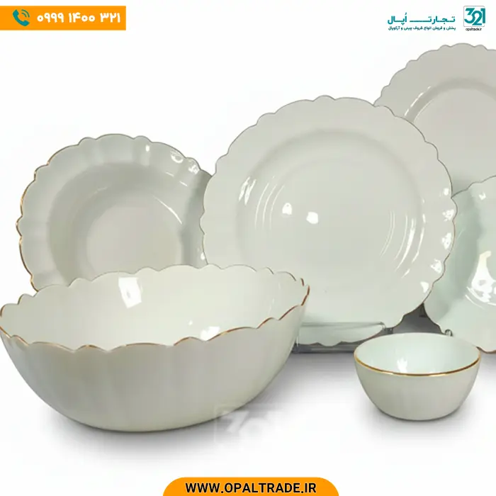 - تعداد پارچه: 26 عدد (شامل بشقاب بزرگ، بشقاب کوچک، کاسه غذا، کاسه سالاد، کاسه دسر و ...)