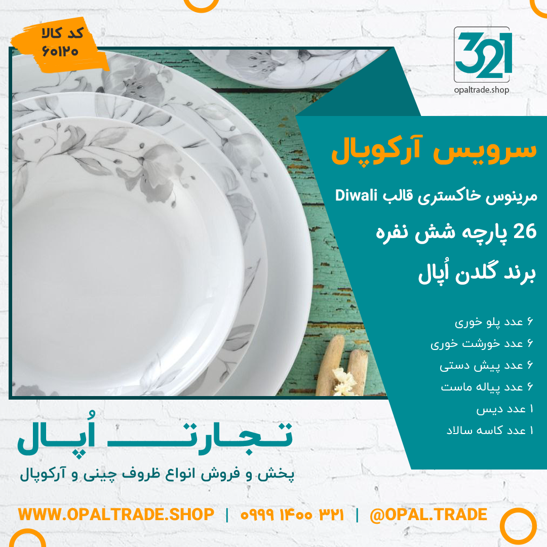سرویس 26 پارچه مرینوس خاکستری قالب Diwali کد 60121