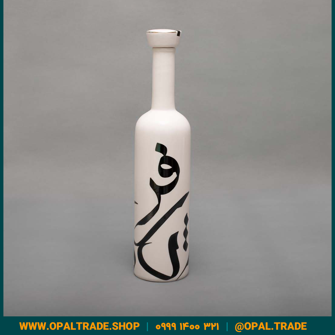 نام مجموعه: ظروف نوع محصول: بطری بزرگ قطر: ۹ سانتی متر ارتفاع: ۳۸ سانتی متر رنگبندی: سفید، قرمز، فیروزه ای، سرمه ای ________________________ متن روی اثر: خطوط نستعلیق