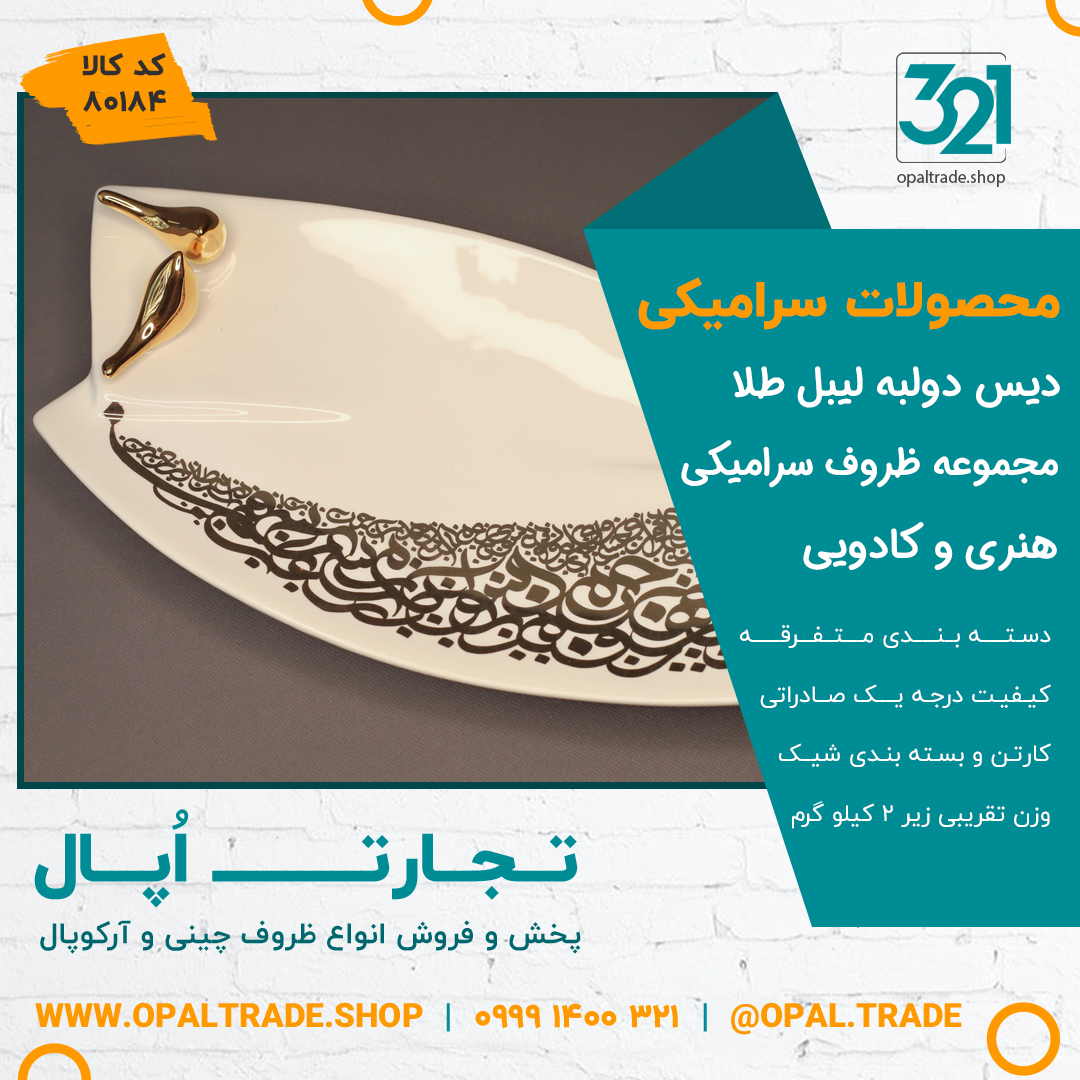 ظروف کادویی سرامیکی دیس دولبه لیبل طلا کد 80184