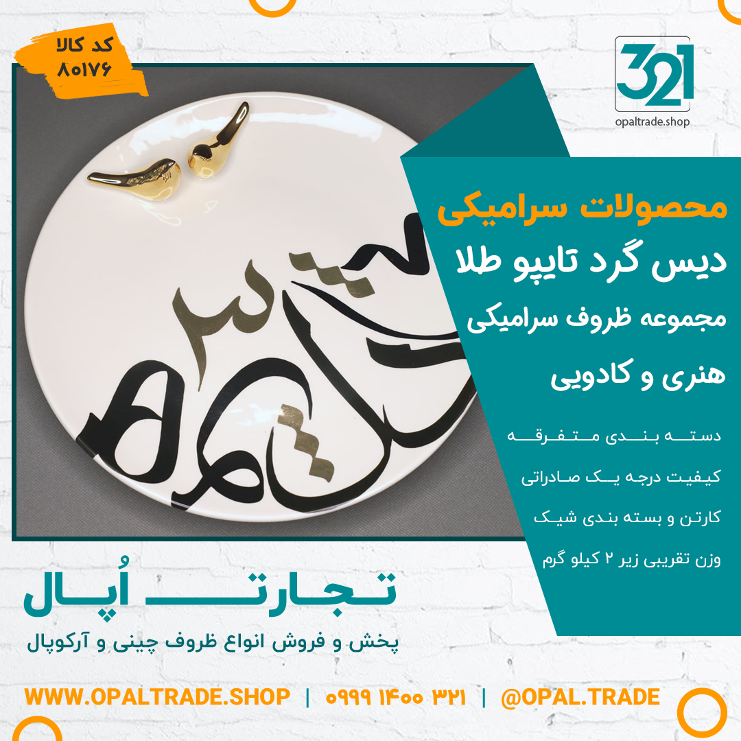 ظروف کادویی سرامیکی دیس گرد تایپو طلا کد 80176