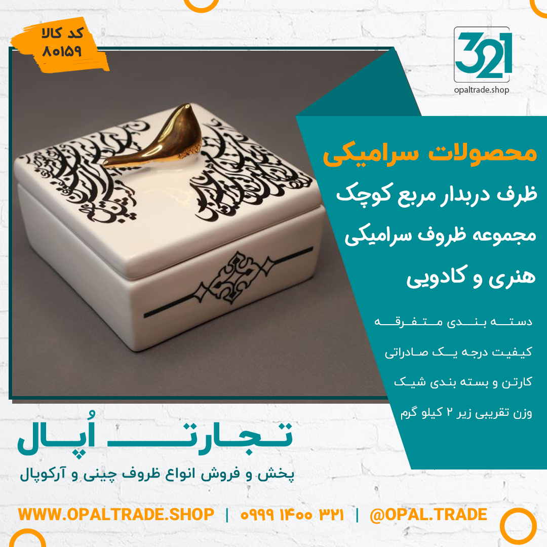 ظروف کادویی سرامیکی ظرف دربدار مربع کوچک کد 80159