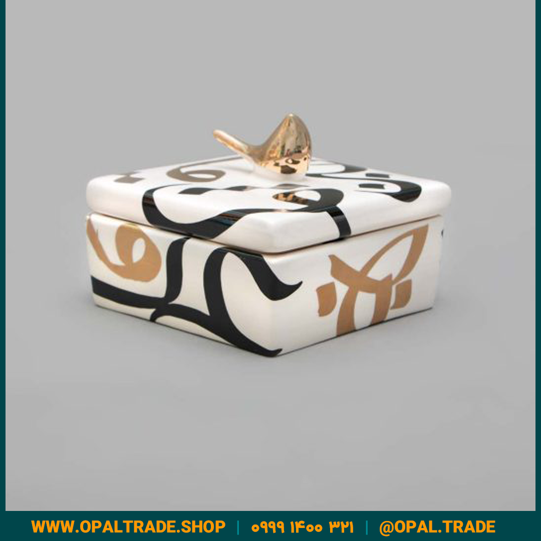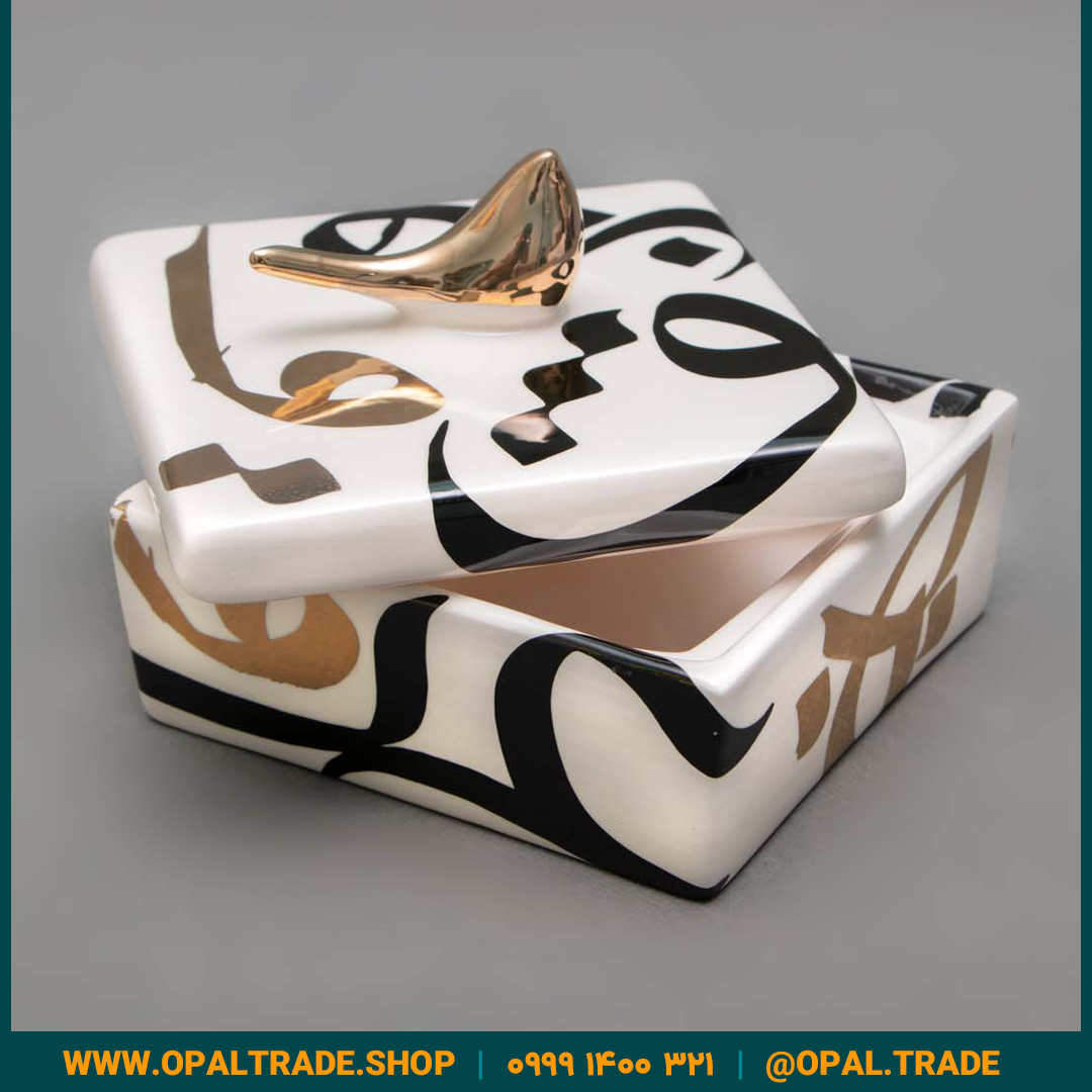 ظروف کادویی سرامیکی ظرف دربدار مربع کوچک تایپو طلا کد 80175