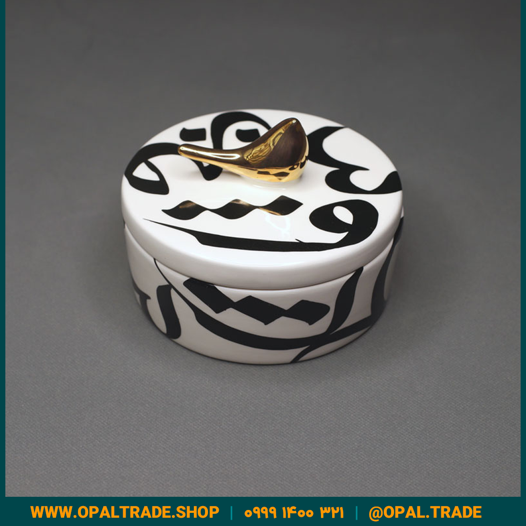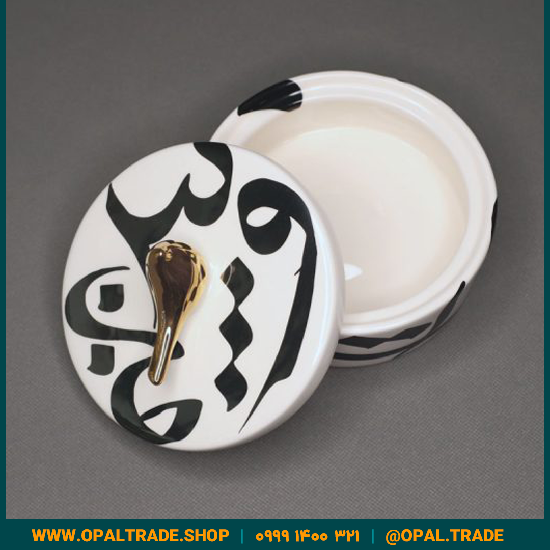 ظروف کادویی سرامیکی ظرف دربدار گرد بزرگ تایپوگرافی کد 80157