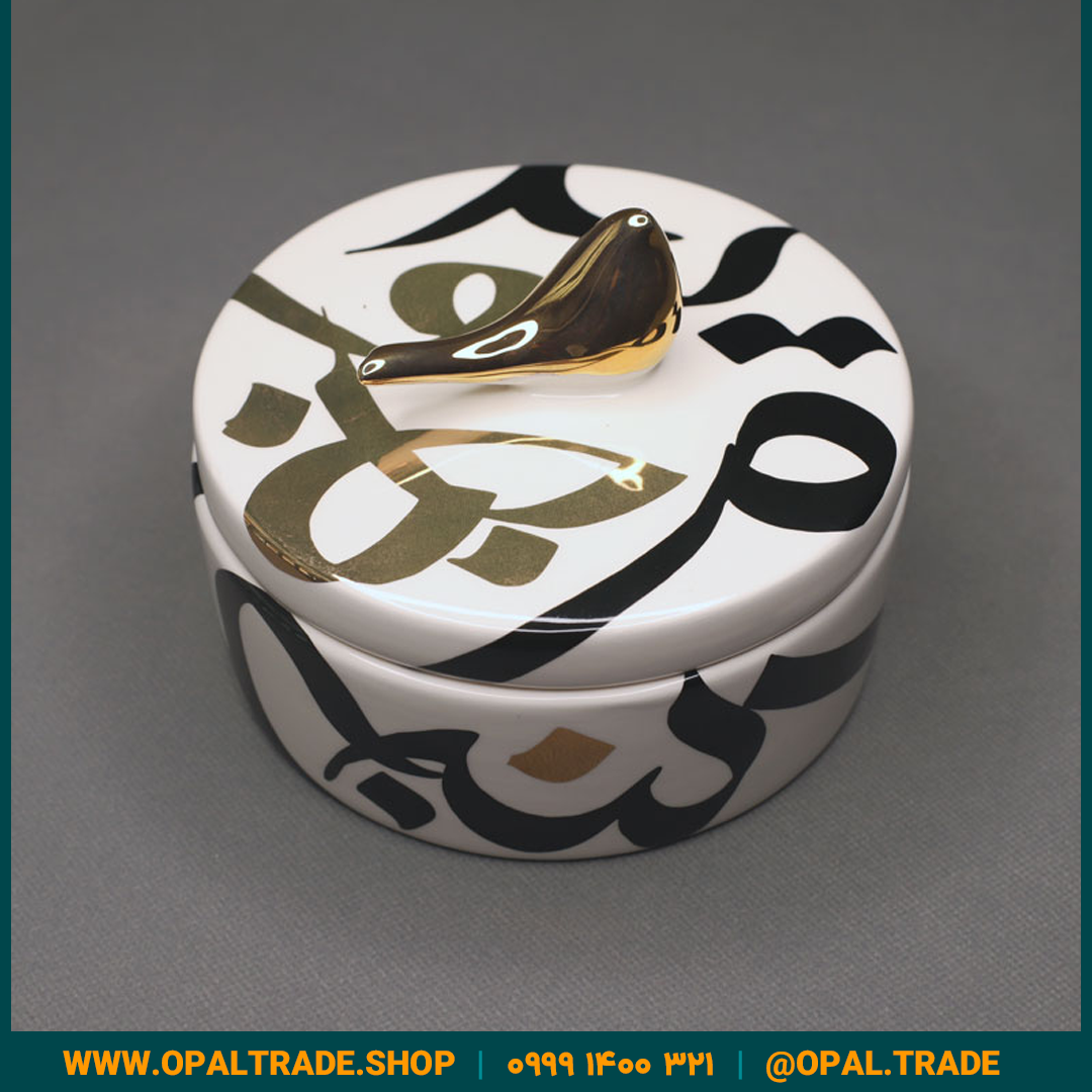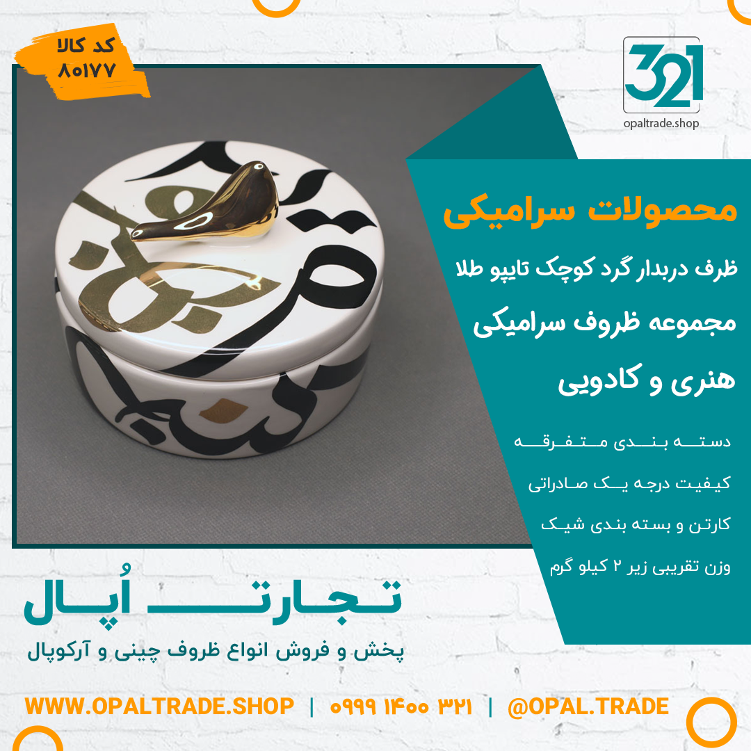 ظروف کادویی سرامیکی ظرف دربدار گرد کوچک تایپو طلا کد 80177