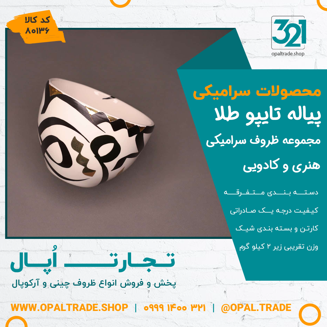 ظروف کادویی سرامیکی پیاله تایپو طلا کد 80136