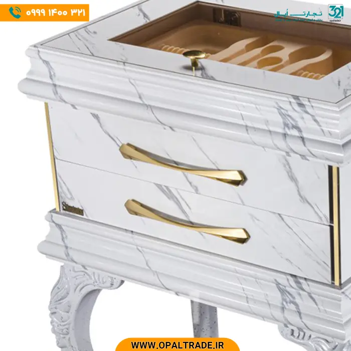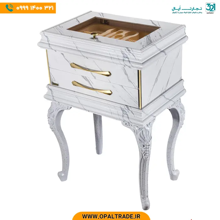 استفاده از مرمر سفید علاوه بر زیبایی، نشان‌دهنده‌ی دوام و کیفیت بالای محصول است. با قرار دادن این کنسول بر روی میز یا بوفه، می‌توانید قاشق‌ها و چنگال‌های پذیرایی خود را با نظم و سلیقه‌ای مثال‌زدنی نگهداری کنید و جلوه‌ای چشم‌نواز به میز مهمانی ببخشید.