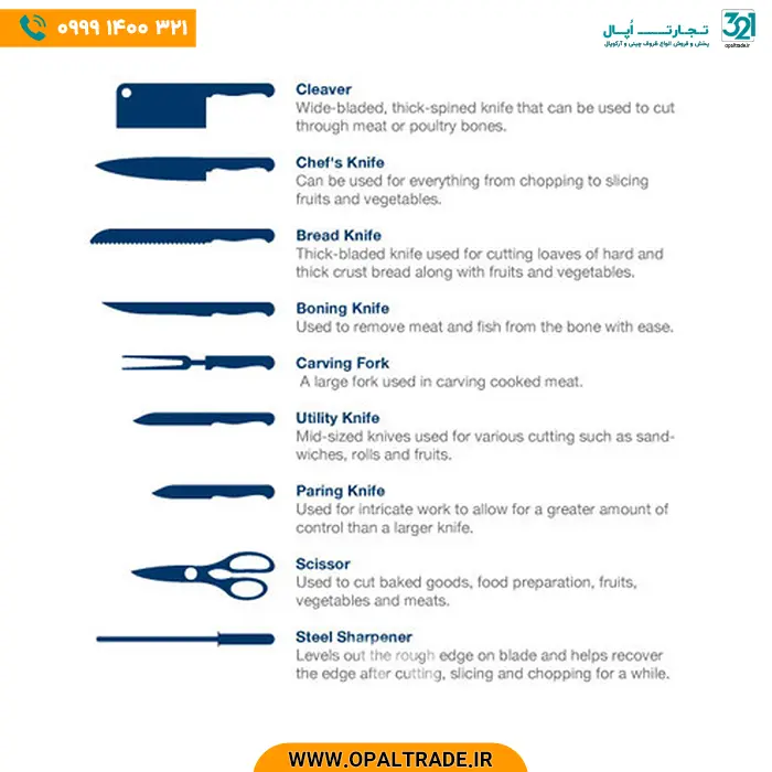 انواع چاقو در یک سرویس استاندارد
