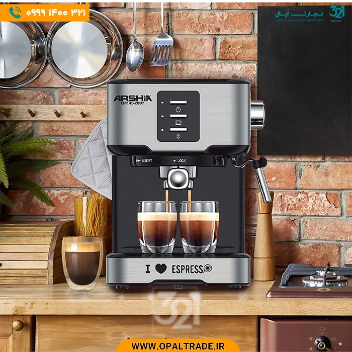 اسپرسو ساز عرشیا پریمیوم مشکی و نقره‌ای