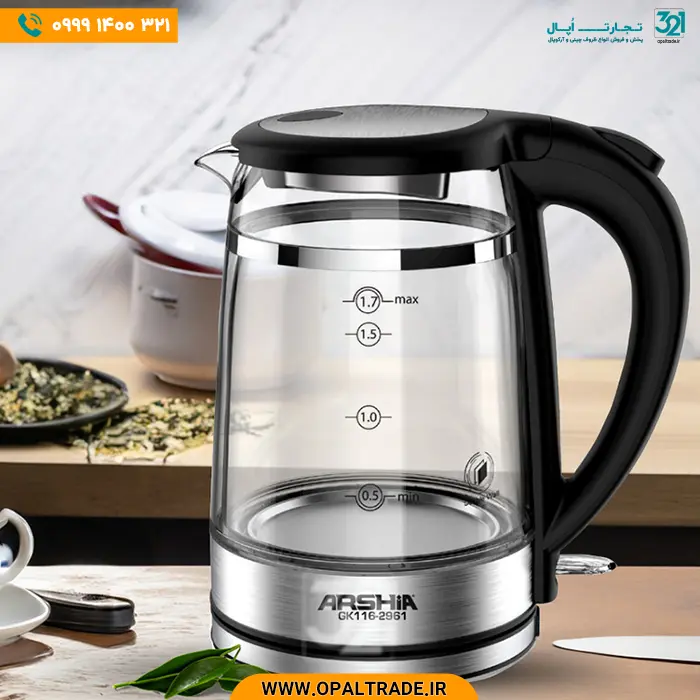 کتری شیشه‌ای دوجداره عرشیا پریمیوم ۱.۷ لیتری