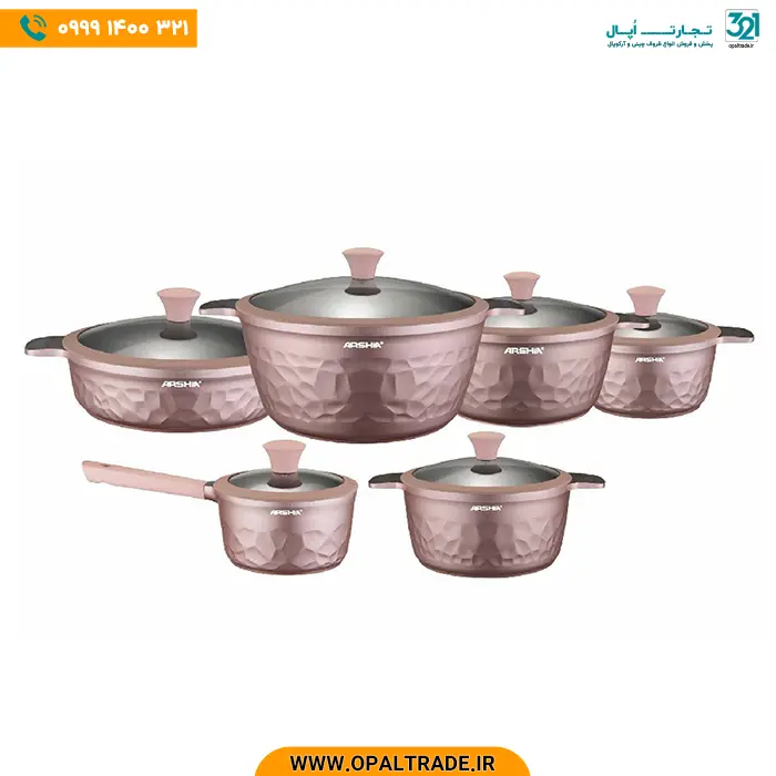 سرویس قابلمه ۱۲ پارچه عرشیا مدل الماس صورتی
