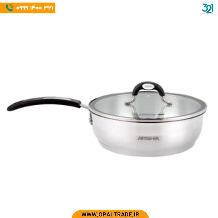ماهیتابه استیل ضد زنگ عرشیا دسته بلند با دو درب 24 سانتی متری