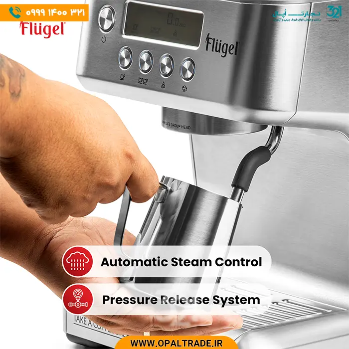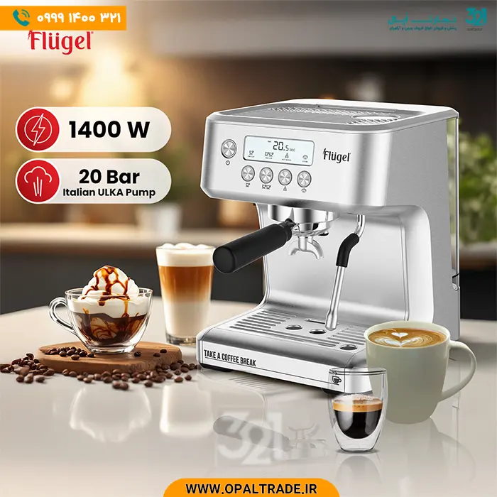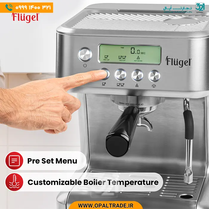 معرفی دستگاه اسپرسوساز دیجیتال فلوگل، دستگاهی پیشرفته که برای ارتقای تجربه قهوه شما طراحی شده است. این دستگاه با موتور قدرتمند ۱۴۰۰ واتی و مجموعه‌ای از ویژگی‌های حرفه‌ای، اسپرسویی با کیفیت باریستا را تنها با لمس یک دکمه به خانه شما می‌آورد.